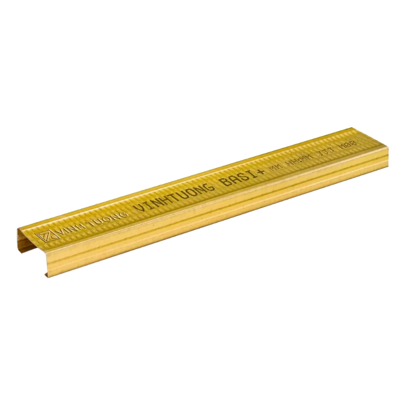 Khung trần chìm BASI® Plus là một hệ khung xương trần thạch cao cao cấp, được sản xuất từ thép chất lượng cao và đáp ứng các tiêu chuẩn khắt khe của tập đoàn Saint-Gobain. Sản phẩm thuộc phân khúc cao cấp trong các loại khung trần chìm, nổi bật với lớp mạ hợp kim nhôm kẽm và phủ resin màu vàng sang trọng giúp giảm thiểu ăn mòn, tăng độ sáng bóng cho bề mặt khung. Nhờ thiết kế hiện đại và vật liệu cao cấp, khung BASI® Plus mang đến hệ trần thạch cao vô cùng cứng chắc, chịu được tải trọng lớn và chống võng hiệu quả, giúp trần nhà luôn phẳng đẹp theo thời gian.