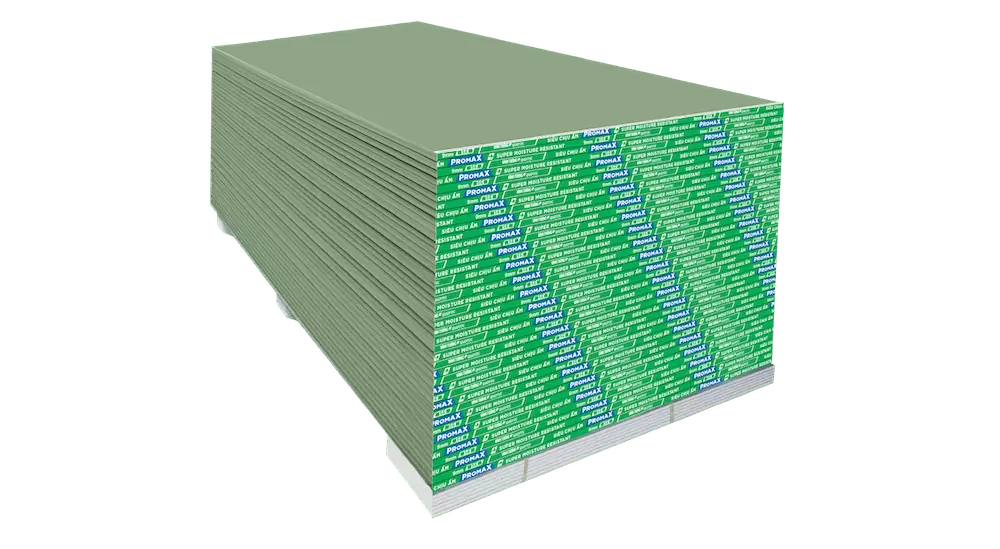 Tấm Thạch Cao VĨNH TƯỜNG-gyproc Siêu Chịu Ẩm PROMAX là sự kết hợp giữa công nghệ GREENCORE lõi xanh cải tiến và công nghệ HONEYCOMB giúp tấm thạch cao chống ẩm tối đa và chống võng vượt trội, phù hợp để sử dụng làm trần – vách thạch cao cho toàn bộ ngôi nhà vào các mùa trong năm.Tấm Thạch Cao Siêu Chịu Ẩm - Gyproc